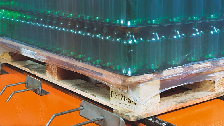 La combinación del proceso de retractilado del collarín y la lámina inferior proporciona una protección de seis caras a la carga de la tarima.